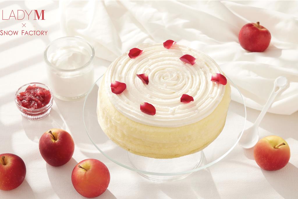 Lady M今年攜手精品級雪坊優格,獻上清爽無負擔的 「花漾蘋果優格千層蛋糕」,透過雪坊希臘優格取代部分鮮奶油,訴求減糖少油的的輕盈感,再混搭手工熬製的玫瑰蘋果果醬展現芳香甜潤,並層層融入手煎餅皮之中,勾勒酸甜平衡的細膩滋味,23日前開放官網預購。